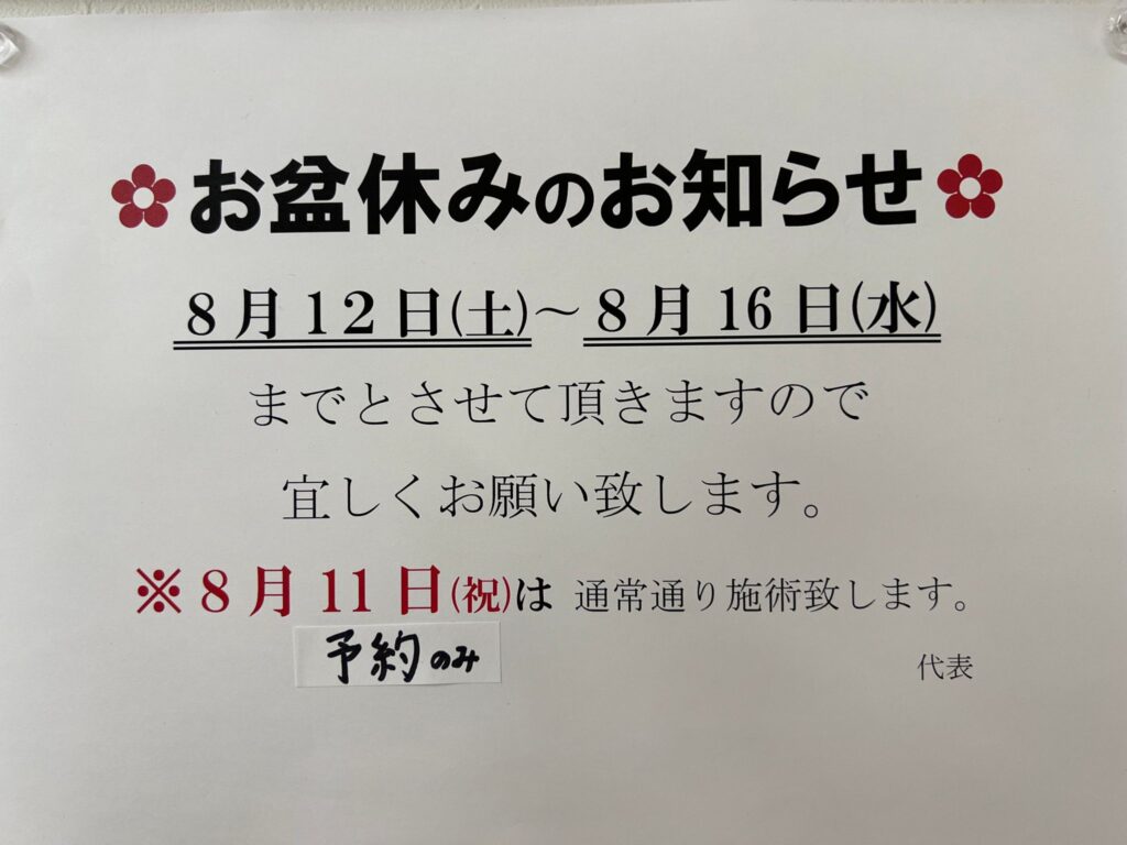 2022年 お盆休みの休診日のおしらせ
