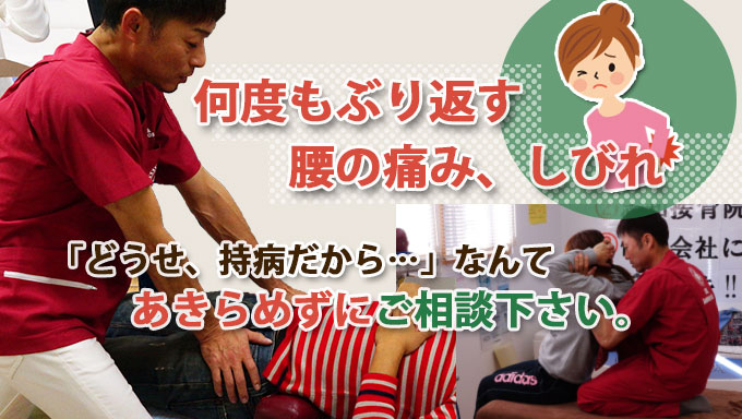 しびれ、腰痛のきつい痛みも適切な施術と運動療法で、改善することは可能です。